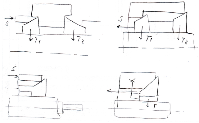 Слева конусность чтобы повернуть рычаги 5. Справа небольшая обратная конустность, чтобы автоматически при различных ситуациях не произошло размыкание механизма (создаются препятствия для этого явления).