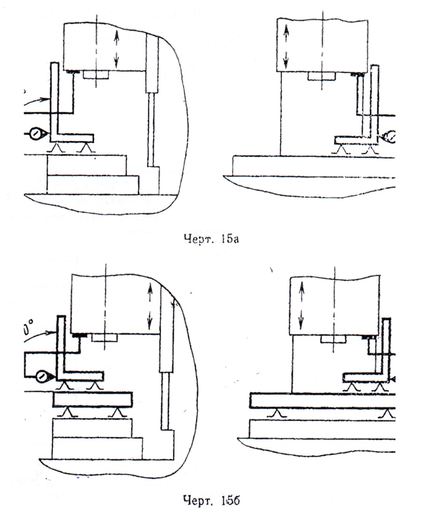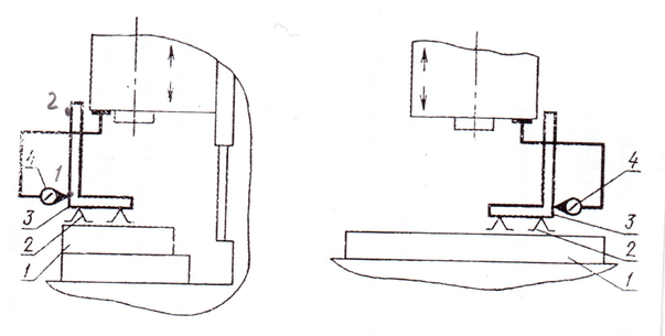 Стол устанавливается в среднем положении. Поверочный угольник устанавливают на две равновысокие опоры.