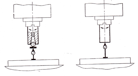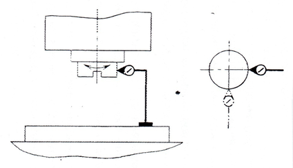 Перпендикулярность оси вращения шпинделя к рабочей поверхности стола в продольном и поперечном направлениях