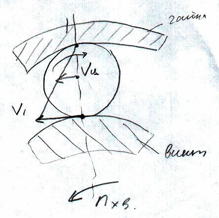 Ходовой винт вращается с частотой nх.в. Гайка неподвижна. Многовенный центр скоростей на гайке. Шарик перекатывается, но отстает от винта. И выходит из зацепления. Канал возврата нужен, чтобы вернуть шарики назад.