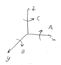 Принимаем прямоугольную систему координат. Прямолинейные координаты X, Y, Z. Круговые координаты A,B,C.