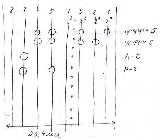 Буквы пробивают как и цифры. Но показатель, что пробита буква – отверстие на 7 дорожке (для букв А-О).