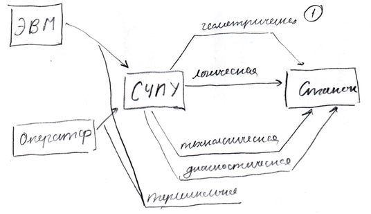 ЭВМ более высокого уровня – собирает статистическую информацию и тоже воздействует на систему ЧПУ.