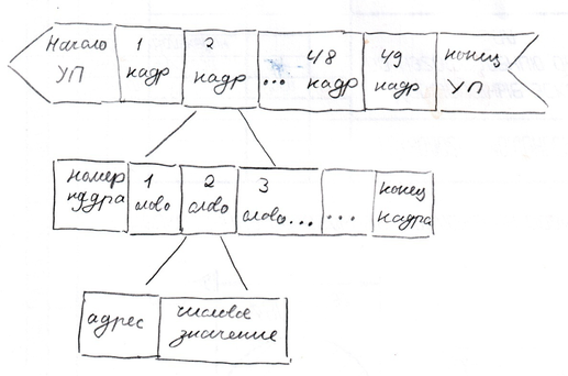 Управляющая программа записывается на программоносителе в виде последовательности кадров.