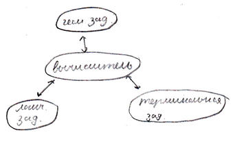 Разделяемый вычислитель. Вычислитель разделяет свои функции на ряд задач. Одна микроэвм решает все задачи поочереди. Дешево. Но функциональные возможности ограничены.