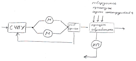 Надо чтоб система выбирала такую подачу, чтоб скорость резания была постоянна. Мы не задаем подачу, а она сама ее определяет. Адаптивная система управления.