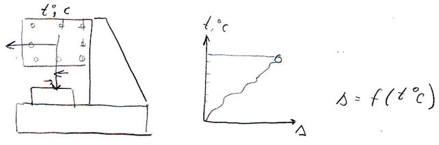 Станок холодный. Все нормально. Станок нагревается, шпиндель уходит, стержень не нагревается и уходит вместе со стержнем. Рычаг отклоняется и тянет за струну, натяную на ИП. Опять косвенное измерение перемещений. Коррекцируется только линейное смещение.