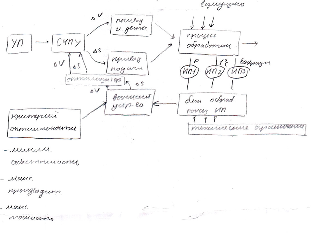 Адаптивные системы оптимального управления. Управление по какому-то предельному параметру. Чтоб не была выше установленной (чтоб не было поломки) и ниже – чтоб не было потери в производительности. Если повышается сила резания, уменьшение подачи – значит меняется сила резания. Заказываем оптимальную силу резания.
