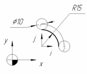 N007 G02 X+002000 Y-002000 J+002000 LF // без коррекции