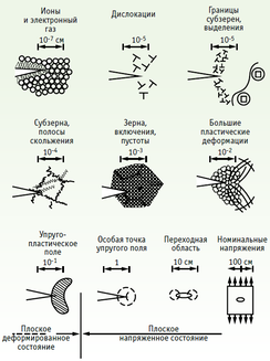 На рис. 5 показаны геометрические размеры для оценки вида процесса разрушения, как физического явления. Следовательно, модели образования и описание механизма процесса разрушения можно разделить на уровни, определяемые относительно геометрического размера их рассмотрения:
