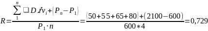 Кост = К – (D1 + D2 + D3) = 1500 – 1000 = 500, который может быть покрыт за 500/600= 0,833 от четвертого года, или 0,833*12= 9,996=10 месяцев.