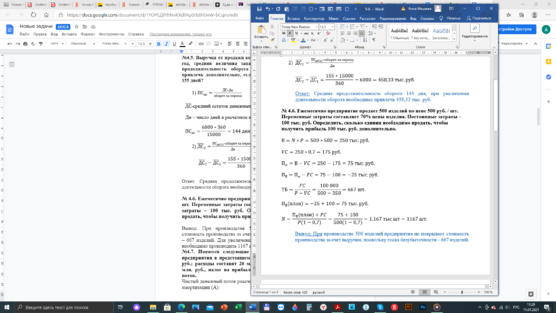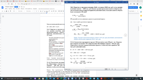№4.1. Определить объем производства и продаж, если имеются следующие данные: постоянные затраты предприятия FC = 400 тыс. руб. в год; переменные затраты VC = 40 руб. на единицу продукции. Цена единицы продукции – 150 руб.