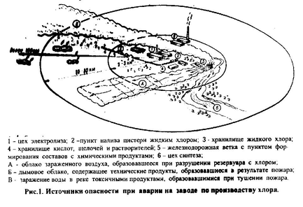 Принципиальная схема источников опасности при авариях на ХОО показана на рис.1.
