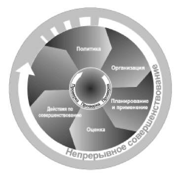 - политика, - организация, - планирование и применение, - оценка, - действия по совершенствованию.