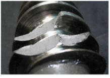 Заедание при твердых материалах колес, вызывающее значительные повреждения поверхностей и последующее быстрое изнашивание зубьев частицами колеса, приварившимися к червяку. При мягких материалах колес заедание проявляется в менее опасной форме, возникает перенос («намазывание») материала колеса на рабочую поверхность червяка. -