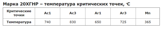Т.к. в марочнике и ГОСТе указана рекомендуемая обработка и температуры каждого этапа для получения табличных свойств, воспользуемся этими данными как ориентиром. Для стали 20ХГНР: