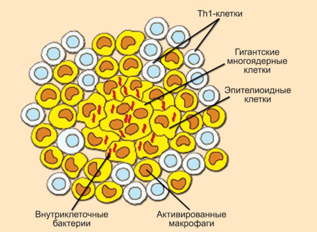 При невозможности развития эффективного Th1-ответа (обычно в результате клеточного иммунодефицита или неадекватной ориентации иммунного ответа на образование Th2-клеток) формируется гранулема, назначение которой состоит в ограничении распространения инфекции. В то же время туберкулезная гранулема — одно из проявлений ≪иммунного поврежения≫.