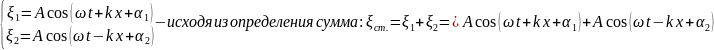 | 5) Стоячая волна. Уравнение стоячей волны (вывод из уравнения бегущей волны). Узлы пучности. Стоячая волна образуется при наложении двух волн одинаковой частоты, бегущих в противоположных направлениях: | | |