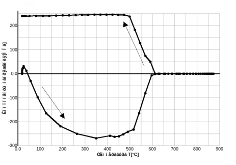 Рис. 7.19. Зависимость продольного напряжения от температуры в точке на расстоянии 5,5 мм от середины пластины