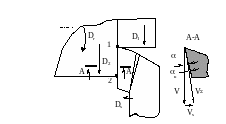 Кинематические углы резца зависят от соотношения скоростей главного и вспомогательного движения. При главном вращательном движении резания для каждой точки главного режущего лезвия скорость подачи одинакова, но скорость резания в точках 1 и 2 разная, поскольку диаметры, на которых лежат эти точки, не равны. Это означает, что и кинематические углы для этих точек также будут разными. Например, угол к в точке 2 будет больше, чем к в точке 1.
