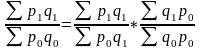 Если строится индекс количественного показателя, в числителе индекса количественный фактор фиксируется на отчетном уровне (1), а в знаменателе он берется на базисном уровне (0), качественный фактор является весом индекса и фиксируется на базисном уровне (0) и в числителе, и в знаменателе индекса.