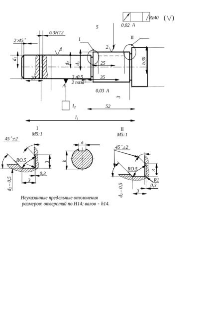 Шейка вала 30h14 с шероховатостью Rа 12,6: