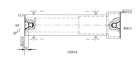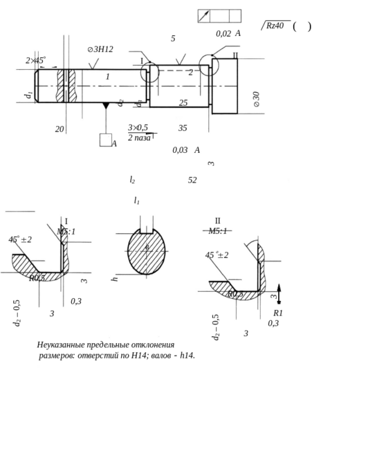 | l2 | l3 | l4 | Отверстия центровые Неуказанные предельные отклонения размеров: отверстий по Н14; валов по h14 | ||||||||||||||