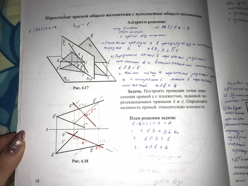 5) найти точку пересечения прямой с плоскостью общего положения.
