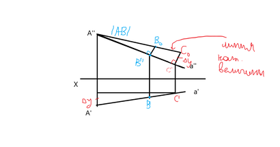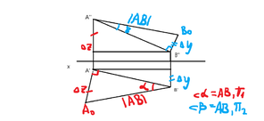 1) Определить длину отрезка прямой общего положения (построением прямоугольного треугольника);