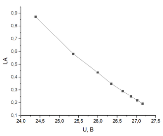 | Uн(В) | 24.382 | 25.361 | 25.989 | 26.347 | 26.639 | 26.855 | 27.024 | 27.159 |