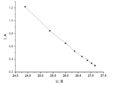 | Uн(В) | 20.736 | 22.905 | 24.047 | 24.884 | 25.484 | 25.936 | 26.289 | 26.573 |