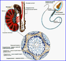 Семенник- мужская половая железа. В ней развиваются мужские половые клетки.