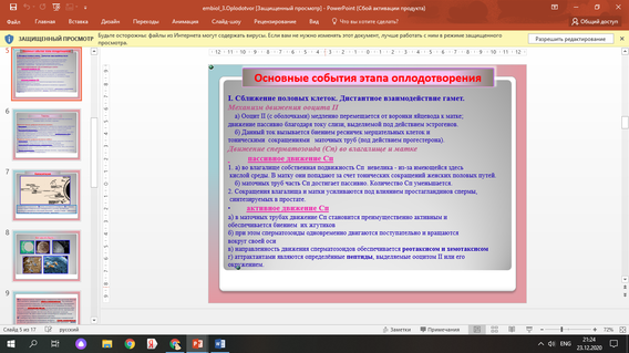 Основные процессы этапов оплодотворения: