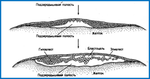 Амфибластула-резкое различие анимальных и вегетативных клеток. Личинка некоторых губок.