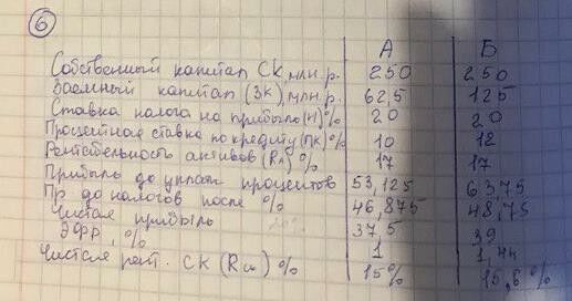 а) до налогообложения и уплаты процентов по кредиту (используйте величину актива и рентабельность актива): А… Б…