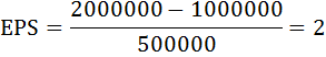 1.23 Рассчитать EPS (доход на акцию), P/E (рентабельность собственного капитала) акции. Чистая прибыль компании составила 2 млн. рублей, выплачены дивиденды по привилегированным акциям – 1 млн. руб., количество обыкновенных акций – 500 000 штук, цена одной акции – 10 рублей.
