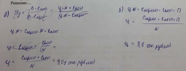 б) получение прибыли П = 2 100 тыс. руб., если известно, что постоянные затраты Спост = 3700тыс. руб., а переменные суммарные затраты Сперем = 22 250 тыс. руб.