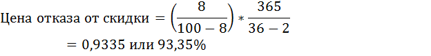 Для определения целесообразности скидки сопоставим цену отказа от скидки со стоимостью банковского кредита.