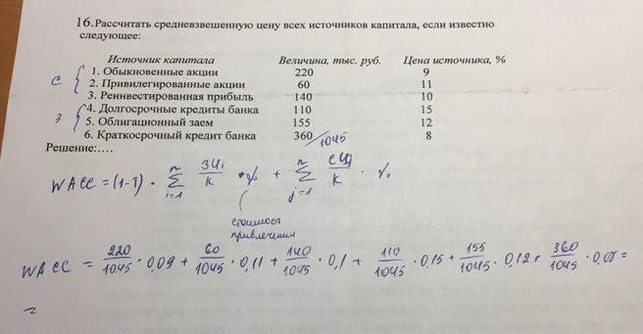 2.15. Рассчитать средневзвешенную цену всех источников капитала, если известно следующее: