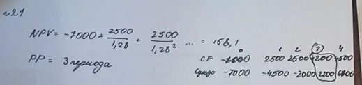 | Денежный поток, тыс. руб. | -7000 | 2500 | 2500 | 4200 | 4500 |