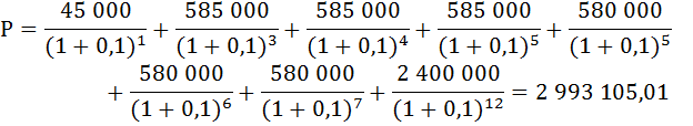 Определим сумму приведённых платежей по предложенной схеме потенциальными арендаторами на начало первого периода.