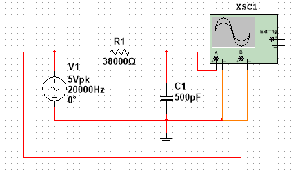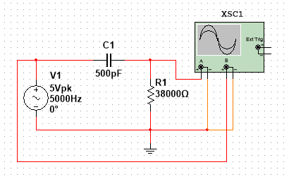 Рис. 5. Схема дифференцирующей цепи с подключенным осциллографом для снятия характеристик