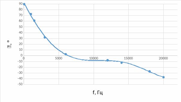 Рис. 13. ФЧХ моста Вина по данным осциллографа