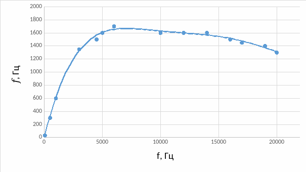 Таблица. 5. Экспериментальные данные АЧХ моста Вина, снятые с осциллографа