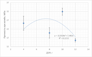 Рисунок 12 – График криволинейной зависимости прочности при изгибе композитного материала от содержания ДБФ