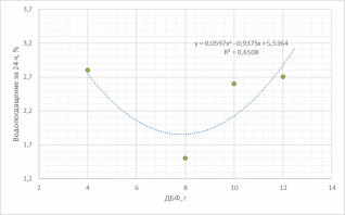Рисунок 10 – График зависимости водопоглощения композитного материала за 24 ч. от содержания ДБФ