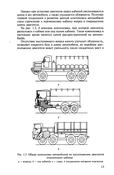 Например, в автомобиле с двигателем, расположенным впереди кабины (рис. 1, а), обеспечиваются нормальные условия работы водителя, относительная чистота воздуха в кабине и изоляция от шума, необходимая температура, а также хороший доступ к двигателю.