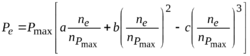 где для карбюраторных двигателей a = b = c = 1; для дизельных двигателей а = 0,8; b = 1,3; с = 1,1; Pmax и nPmax – максимальная эффективная мощность (кВт) и значение частоты вращения коленчатого вала (об/мин) (при Pmax); Ре и nе – промежуточные значения эффективной мощности и числа оборотов коленчатого вала.