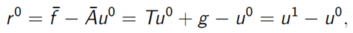 Теперь можем перейти от решения задачи без черточек к задаче с чёрточками, эта система уже предобусловлена (при этом В входит неявно). Можно применить итерационный метод крыловского типа (снова ссылка на 33-34 вопрос скорее всего). Для начала надо найти невязку, u^0 – произвольный начальный вектор