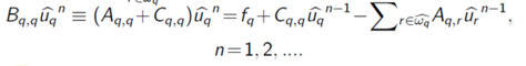 Так как u^n сходятся, то при предельном переходе слагаемые с матрицей С уйдут, решение не изменится. A_qq+C_qq – объявим предобуславливающей. Матрицу С можно подобрать таким образом, чтобы ускорить итерационный процесс. Это вроде называется методом возмущения диагональных матриц.